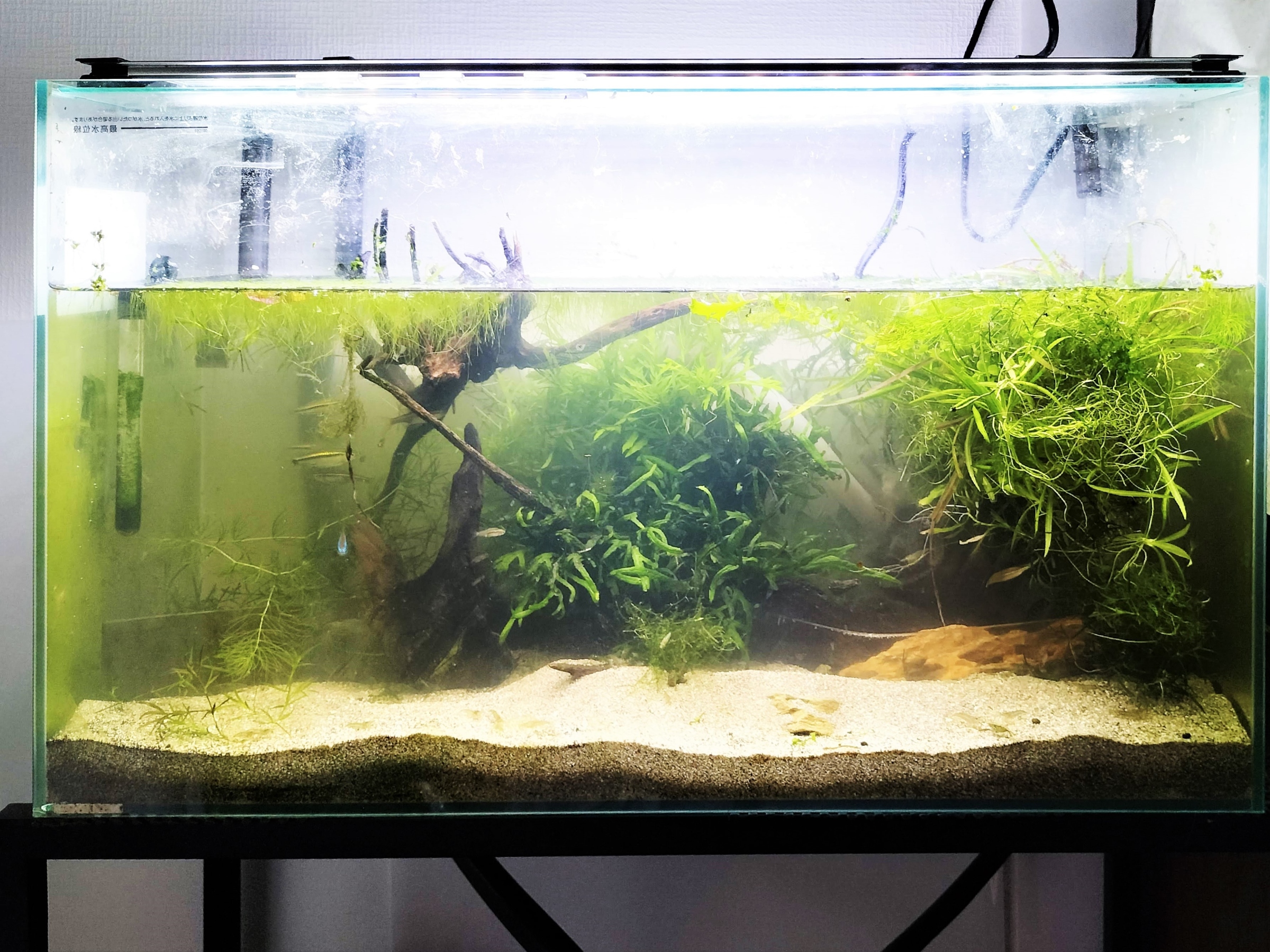 水槽を見ると、ミクロソリウム トライデントリーフの生えている辺りからのみ、白っぽい綿のようなものが見える。数日前に初めて確認したが、ここまで目立つ大きさになったのは昨日からで、ここ2日間の成長が変則的に速くなったという印象だ。見覚えのある藻類だが、名前も特徴も知らない。明日調べよう。