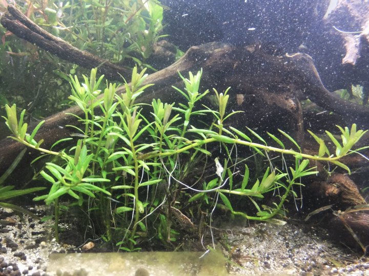 今日で2か月間になるが、それにしては成長が遅い気がする。葉の形も向きも何だか不揃いで、どうも見栄えがしない。ただ葉の色は良く、傷みも少なそうで、藻類やシダ病の様子もなさそうだったので、これからに期待。